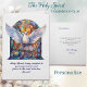 Offer comfort and spiritual peace with this personalized sympathy card featuring a stunning stained-glass image of the Holy Spirit as a magnificent white dove. Set before a radiant stained-glass church window, the dove’s wings are spread in glorious fashion, symbolizing divine comfort, hope, and eternal peace for those who mourn. The vivid stained-glass colors of blue, violet, red, and orange create a powerful and uplifting visual that brings warmth and reverence to this heartfelt design.