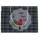 Each gift bag has a tartan pattern with a Christmas element and/or text that is fun and fitting for the occasion.