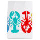 Sac cadeau de taille moyenne avec texte "happy anniversaire" et gros homards colorés tout autour. Modifiez le texte en quoi que ce soit, ou supprimez-le. Changer la taille du sac peut signifier que le texte ne s'adapte pas correctement, mais l'image le sera.
