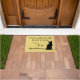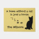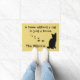 A cute custom doormat you can personalize with your name, made for cat lovers. The phrase "A home without a cat is just a house" is decorated with kitty footprints and the silhouette of a sitting cat. The background is shown in mustard yellow, but you can change it to the colour of your choice by clicking on "customize it".