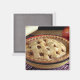 Home baked apple pie on cooling rack with apple magnet