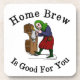 A fun design for home beer brewers with a colourful medieval tapster pouring himself a pitcher of ale from his two kegs framed by the text "Home Brew Is Good For Your".