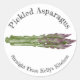- This Pickled Asparagus custom canning label sticker is absolutely charming. It features a weathered, hand-written-styled font and a beautiful watercolor image of a Asparagus. Coordinating items are available. There are labels for countless jar foods, but if you would like one that I do not have, feel free to message me and I will gladly add a new design to my collection.