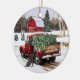 Studio digital design for a heartfelt touch to your Christmas decor. Home for Christmas with snow! Each ornament showcases thoughtfully crafted artwork that is unique to the studio. Printed on glossy round ceramic, this ornament boasts a luxurious feel that complements the farmhouse beauty of the designs.
