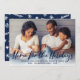 Send warm cheer with this “Home for the Holidays” holiday card, with navy script over your favorite photo—ideal for family updates or a new baby’s first Christmas. The back features a coordinating navy winter doodle pattern of snowflakes, stars, and sprigs. Add your names, year, and any photo (family, baby, or pet).