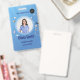Easily personalize this blue professional healthcare employee photo ID pink badge with your custom details.