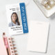 Easily personalize this blue professional healthcare employee photo ID blue badge with your custom details.