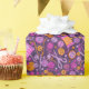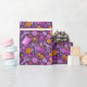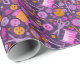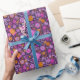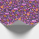 Wrapping paper featuring lovely pattern, sewing supplies - scissors, buttons, spools of thread, needles. This design, elaborated from handmade paper collage, makes a great gifts for crafters and sewers. Violet, pink, magenta and yellow orange colours.