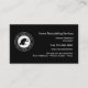 Home improvement business card template in a modern black and white design that displays a home improvement emblem and text templates you can customize online. Designed for a building contractor, remodeling services, or residential construction.