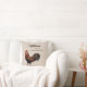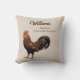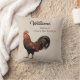 Farmhouse style pillow celebrating family and home life. Lovely cream colored pillow is decorated with a vintage style rooster illustration in brown and warm reddish and rust tones. Personalized with a family name and a warm saying that you can edit and adjust to your own family values or thoughts or completely remove.