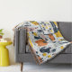 Give your special cat lover his or her own special custom kitty throw blanket. Blanket has the text Home is Where My Cat Is and includes space for a first name. In the background there is a pattern of adorable orange, yellow, black, and grey cats.