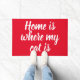 Home Is Where My Cat Is White Script Red Doormat