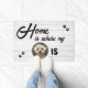 Home is Where My Dog Is Custom Photo Wood Welcome Mat | This cute and inspirational design features the quote "Home is where my [your pet's face] is" in modern and trendy typography, flanked with black pawprints, on a faux white wood background. This is a great gift for the dog owner who loves their dog.