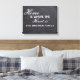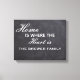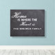 A personalized stretched canvas print that features the family's last name written on a chalkboard textured background along with the text "Home Is Where The Heart Is". This custom canvas print makes a great gift for any occasion.