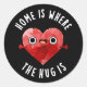 Home Is Where The Hug Is Funny Heart Pun Dark BG Classic Round Sticker