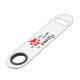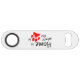 A wordplay with the quote "Home is where the heart is", this stainless steel bottle opener has the words "Home is where the [paw print picture] is", with the paw print picture in red, representing the "heart". The perfect gift for pet lovers.