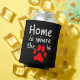 A wordplay with the quote "Home is where the heart is", this black can cooler has the words "Home is where the [paw print picture] is", with the paw print picture in red, representing the "heart". The perfect gift for pet lovers.