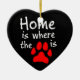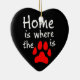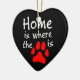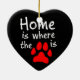 A wordplay with the quote "Home is where the heart is", this heart shaped ceramic ornament has the words "Home is where the [paw print picture] is", with the paw print picture in red, representing the "heart". The perfect gift for pet lovers.
