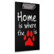 A wordplay with the quote "Home is where the heart is", this clipboard has the words "Home is where the [paw print picture] is", with the paw print picture in red, representing the "heart". The perfect gift for pet lovers.