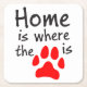Home is where the paw print is square paper coaster