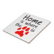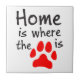 A wordplay with the quote "Home is where the heart is", this small ceramic tile has the words "Home is where the [paw print picture] is", with the paw print picture in red, representing the "heart". The perfect gift for pet lovers.