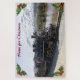 Take this old-fashioned train with a snow covered mountain in the background home for Christmas.