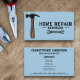 A blue business card with an illustration of a hammer and wrench. There are fully customizable information on the back, including a list of services. Perfect for all kinds of repair activities, such as handyman, home repair services, plumbing, etc.