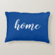 The word "home" in a chic script is featured on the front and back of this lumbar pillow in any colour, we show blue. Perfect for your home decor, your favourite chair, or an accent in your bedroom.