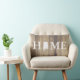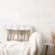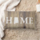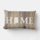Rustic elegant lumbar pillow featuring a light wooden planks background with the word "HOME" and the "O" being a silhouette of the state of Alabama. The backside has your family name in white text.