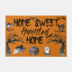 Add a spooky touch to your front door with this Home Sweet Haunted Home doormat featuring creepy black lettering and Halloween-themed illustrations of scary trees, bats, a jack-o-lantern, a ghost and a black cat all set against an orange background.