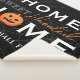 Welcome your guests with this spooky fun personalized Halloween sherpa blanket. The stylish typography design features "Home Sweet Haunted Home" wording with custom text for your family name and accents of a scary jack-o-lantern pumpkin, creepy dangling spider, and spider web background. Includes a black, grey, white, and orange colour scheme.