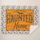 A cozy declaration of spooky delight takes centre stage against a warm orange backdrop, where playful typography spells out “Home Sweet Haunted Home”. Surrounding this cheerful haunt is a border alive with motion—tiny bats in black, white, and orange swirl like confetti in the autumn air. The design balances eerie charm with festive warmth, inviting both tricksters and treaters into a space where Halloween spirit lingers lovingly. A celebration of fright made friendly, perfect for those who find comfort in cobwebs and joy in the shadows.