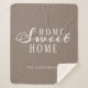 Designed with customizable tan brown background on the front side and "Home Sweet Home" in white calligraphy script and block lettering typography on the centre. Personalized with family's last name on lower front side of blanket. Makes a great gift idea for newlyweds, couples housewarming with new home, birthdays, anniversaries or anyone on any occasion.