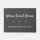 Elegant personalised family name doormat featuring your family name with your established date set in a classic white text on a slate grey background with the message "home sweet home" that is set in an elegant white script text with three cute red hearts placed in between. Personalise with your details and customise the colour to the colour of your choice.