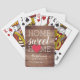 Make the most of being home with these cool rustic custom playing cards with a faux wood plank background. Design features "home sweet home" in red and white lettering with a heart in place of the second "O." Personalize with your family name, hometown, and year established beneath. Perfect for housewarmings or celebrating a long distance move.