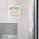 The Magnet features the phrase "Home Sweet Home" in a cheerful, multicolored design. Each word could be a different vibrant colour, or the letters themselves could be a playful mix of hues. Imagine "Home" in a warm yellow, "Sweet" in a soft pink, and "Home" again in a calming blue. The overall look is bright and welcoming, perfect for expressing your love for your cozy haven.