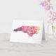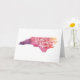 This design features a watercolor map of the US State of North Carolina with a multicoloured, pink, purple, red and orange hand painted watercolor texture. Map is isolated on a white background and "home sweet home" stylized text is added overtop.