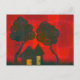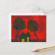 duplex twin peak homes under two trees within grassy flower gardens - with a patchwork textured background :all occassion postcard or customize with text to turn it into an invitation, new home, moving house announcement - or anything else your imagination can think of