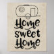 Home sweet home with retro camper and camping saying written in an eye-catching typography. This design would be perfect for anyone who loves camping, glamping, RV life, RVing, or has a travel trailer, pop-up, or camper. Trendy rustic background will look great in any farmhouse or rustic decor.