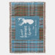 Cute home sweet home Christmas throw blanket you can easily customize by clicking the "Personalize" button, Featuring deer silhouette and clan Anderson tartan in teal, light blue check.