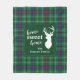 Cute home sweet home Christmas blanket you can easily customize by clicking the "Personalize" button, Featuring deer silhouette and clan Duncan tartan in green, and purple check.