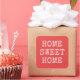 Coral pink modern geometric pattern, home sweet home custom text, simple elegant fresh quote design, newcomer gift
