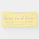 Welcome guests to your housewarming party with stylish elegance. This elegant "Home Sweet Home" housewarming party banner features a stylish "Welcome to Our New Home" message, street address and established date in modern script on a light yellow background. Personalize with your custom message or family name, address, or established date, or use the "contact this designer" button for help.