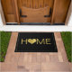 A modern "home" text large doormat with gold heart. Gold and black. A perfect welcoming door mat for newlyweds.