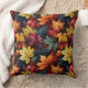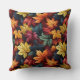 This home throw accent pillow is shown in a lovely colourful autumn leaves print.