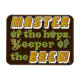 This "Les Miserables" inspired design for beer brewers says, "Master of the hops. Keeper of the brew." The words "master" and brew" are done in beer colours with bubbles. The rest is green, with the "o"s replaced by hops and part of the "K" replaced by a key. A great magnet for a homebrewer or a brewmaster.