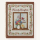 Invite a sense of calm into your daily routine with the "Homely Comforts" journal. This cover features a peaceful faux-embroidery illustration of a rustic wooden window looking out onto a bright day. On the windowsill sits a white ceramic vase filled with "hand-stitched" pink, blue, and yellow flowers, alongside a glowing lit candle. A small red songbird is perched on a blossoming branch just outside the lace-curtained pane. Framed by an elegant, flowing vine border of pink and yellow blossoms on a cream linen-textured background, this design feels like a warm invitation to sit and reflect.