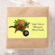 This pretty label is perfect to use on your personalized homemade candles. The background is yellow. A graphic of a wheel barrow full of flowers sits in the left side. All text is customizable.