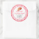 This fun and whimsical sticker features a loaf of cranberry bread on a white lace doily and red gingham background. It is perfect for labelling your homemade goods. The text combines handwritten script and serif fonts for a stylish and modern look.