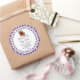 This fun and whimsical sticker features a jar of fig jam on a white lace doily and purple gingham background. It is perfect for labelling your homemade goods. The text combines handwritten script and serif fonts for a stylish and modern look.